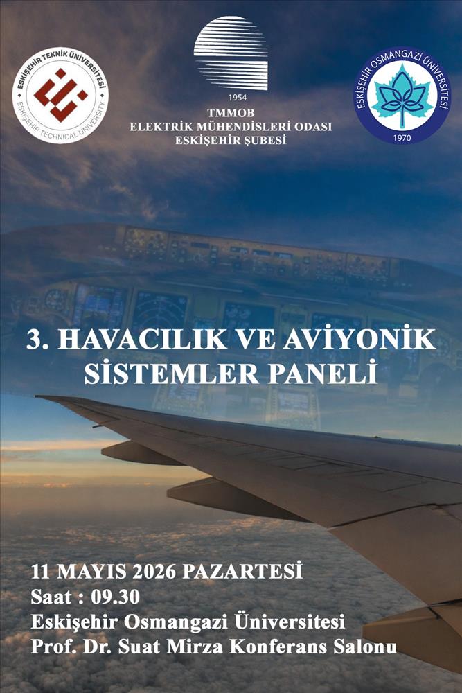 TMMOB Elektrik Mühendisleri Odası Eskişehir Şubesi tarafından, Eskişehir Osmangazi Üniversitesi ve Eskişehir Teknik Üniversitesi paydaşlığı ile 11 Mayıs 2026 tarihinde Eskişehir Osmangazi Üniversitesi Prof. Dr. Suat MİRZA Konferans Salonu'nda “Havacılık ve Aviyonik Sistemler Paneli” düzenlenecektir. Herkes Davetlidir!