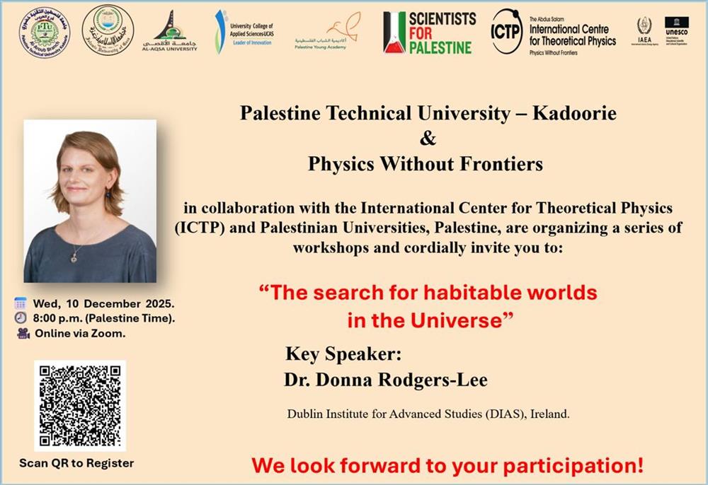 Filistin Teknik Üniversitesinin düzenlemiş olduğu Dr. Donna Rodgers-Lee tarafından verilecek "The search for habitable worlds in the Universe" başlıklı çevrim içi seminere davetlisiniz.